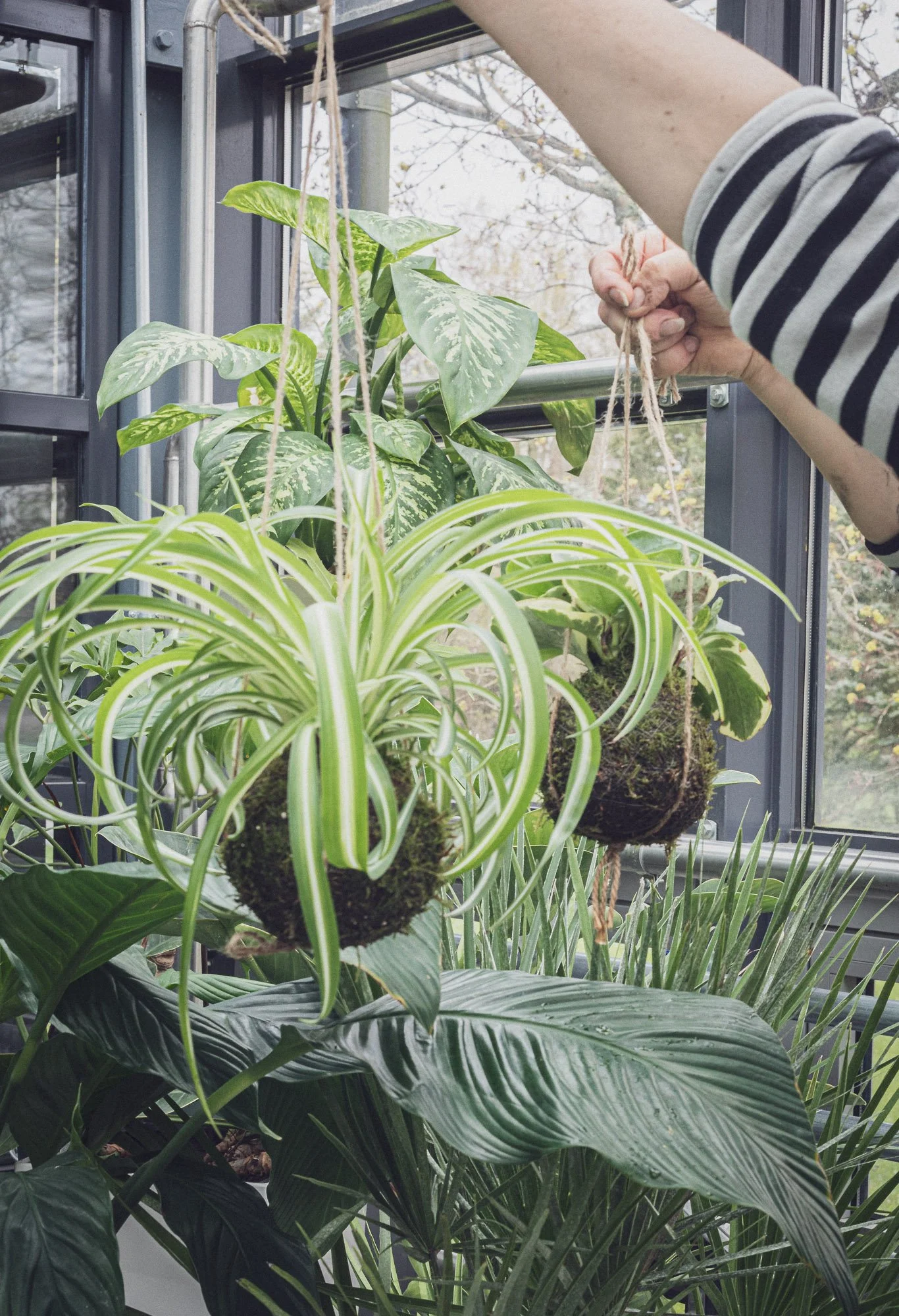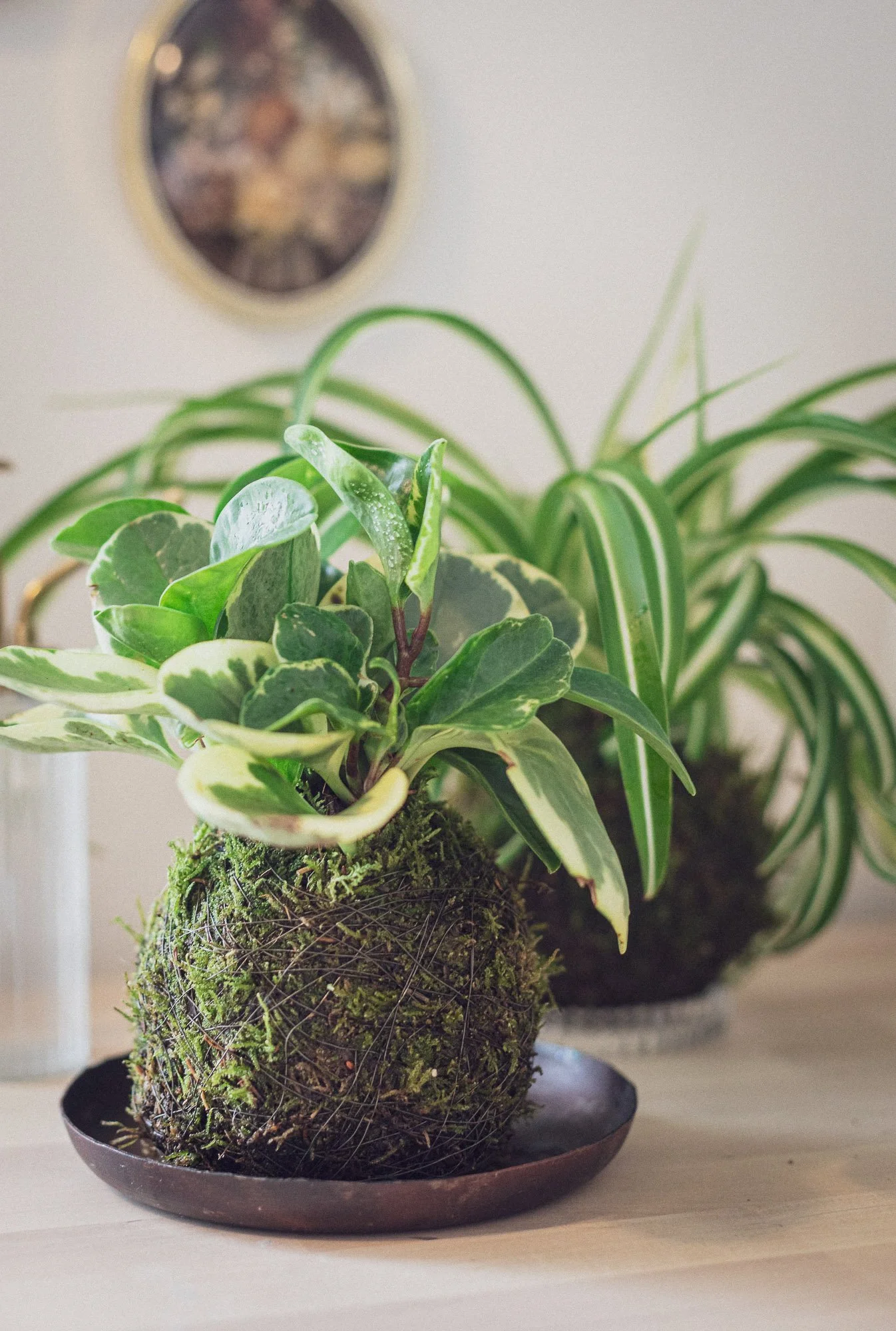 Kokedamatekniikalla istutetut kasvit on kivoja sisustuselementtejä. Pallerot voi laittaa riippumaan amppelin tavoin tai sitten ne voi asettaa lautasen päälle, johon ne on myös helppo kastella. Riipuvia kokedamoja voi upottaa vesiastiaan ja kastella kasvit näin.